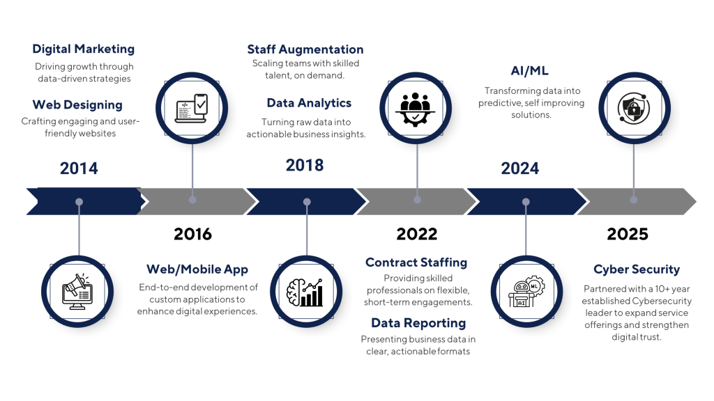 We help businesses transform bold ideas into intelligent, scalable solutions powered by AI, data and automation.Our enterprise app expertise modernizes systems, integrates smart workflows and unlocks real-time insights.By uniting Data Science, Cloud and DevOps, we build connected digital ecosystems that drive growth.Our three verticals- Technology, Recruitment and Digital Marketing, empower enterprises more innovatively and scalably.